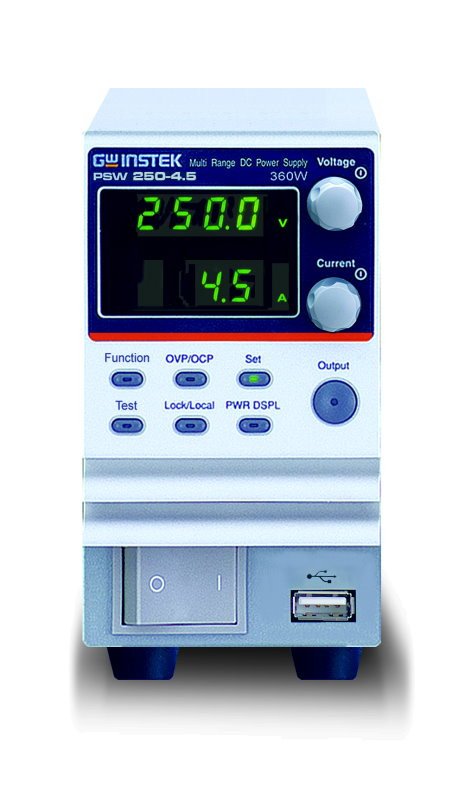 The PSW-Series is a single-output multi-range programmable switching DC Power Supply covering a power range up to 1080W. This series of products include fifteen models with the combination of 30V, 80V, 160V, 250V, and 800V rated voltages and 360W, 720W and 1080W maximum output powers. The multi-range feature allows the flexible and efficient configuration of voltage and current within the rated power range. As the PSW-Series can be connected in series for maximum 2 units or in parallel for maximum 3 units, the capability of connecting multiple PSW units for higher voltage or higher current output provides a broad coverage of applications. With the flexibility of multi-range power utilization and series/parallel connection, the PSW Series significantly reduces the user’s investment for various power supply products to accommodate the projects with different power requirements.