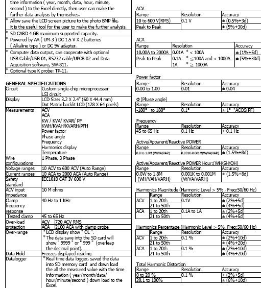 • Cables to 57mm   10amps  to 2000amps autorange
